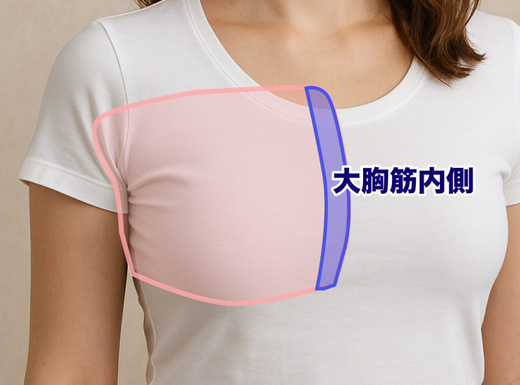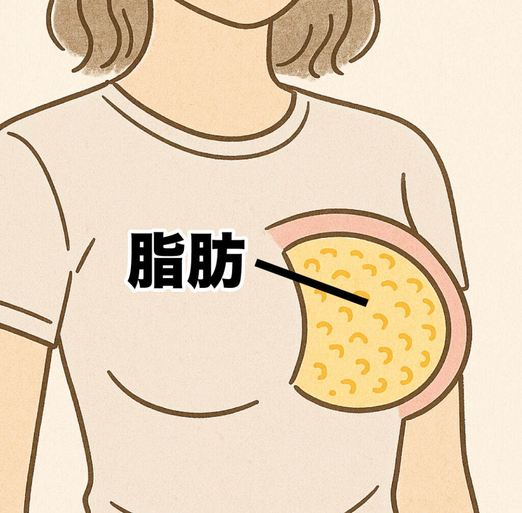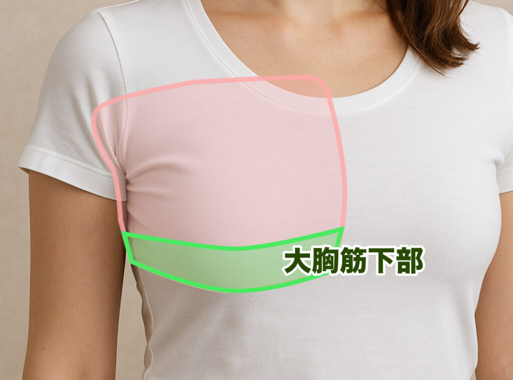 バストはほとんどが脂肪でできていますが、底にある「大胸筋」や「小胸筋」といった筋肉が土台となって支えています。