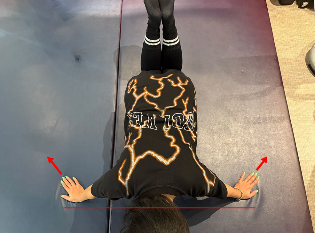 ④胸を床に近づけ、腕で押し上げる動作を繰り返す。