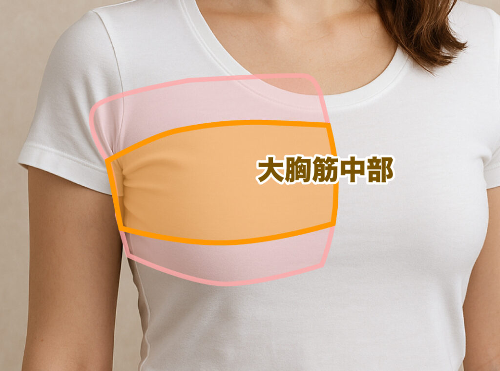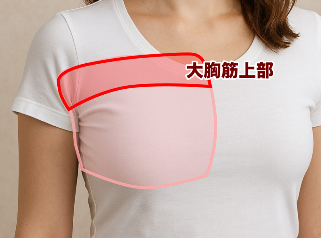 大胸筋の上2/3の部分を言い、この部分の筋肉のボリュームを増やすことで直接的なバストアップ効果が期待できます。